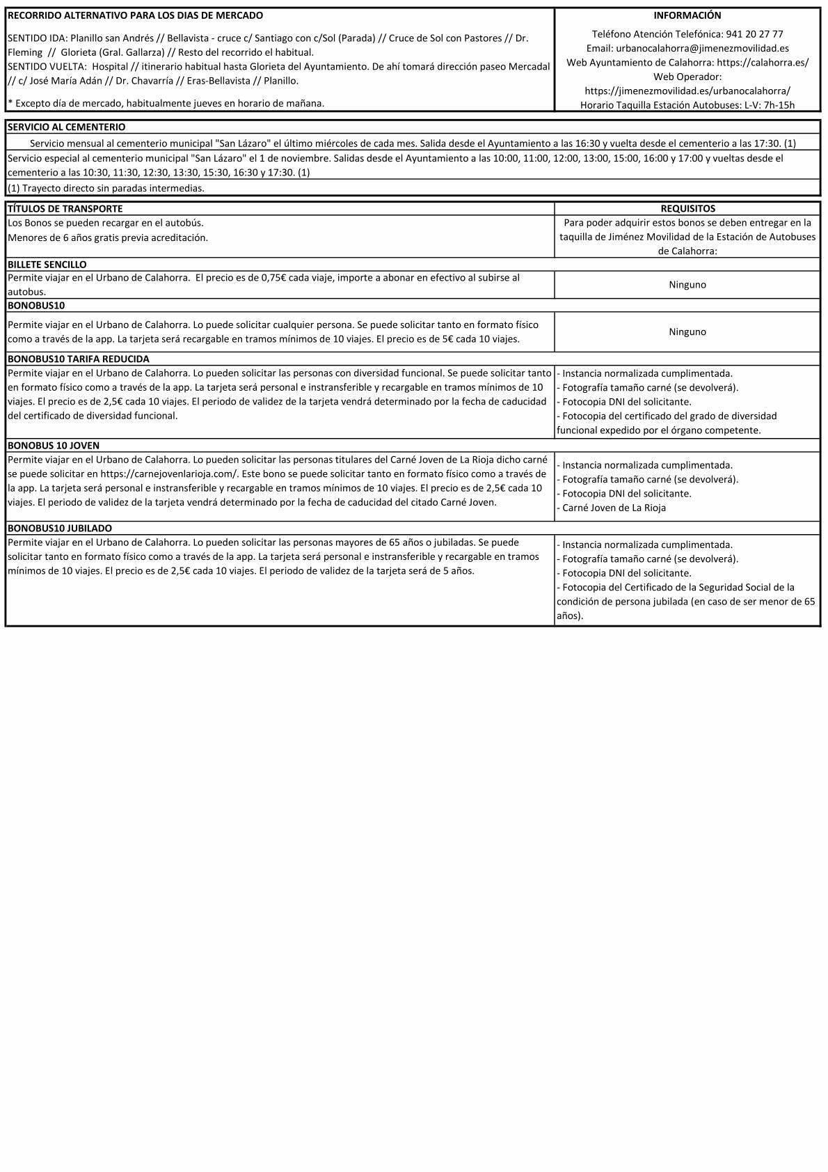 Este horario de invierno, al igual que el de verano, se puede consultar en los postes de las paradas del autobús y en la página web del Ayuntamiento de Calahorra (www.calahorra.es) pinchando en el apartado Instalaciones y servicios dentro de Nuestra ciudad.