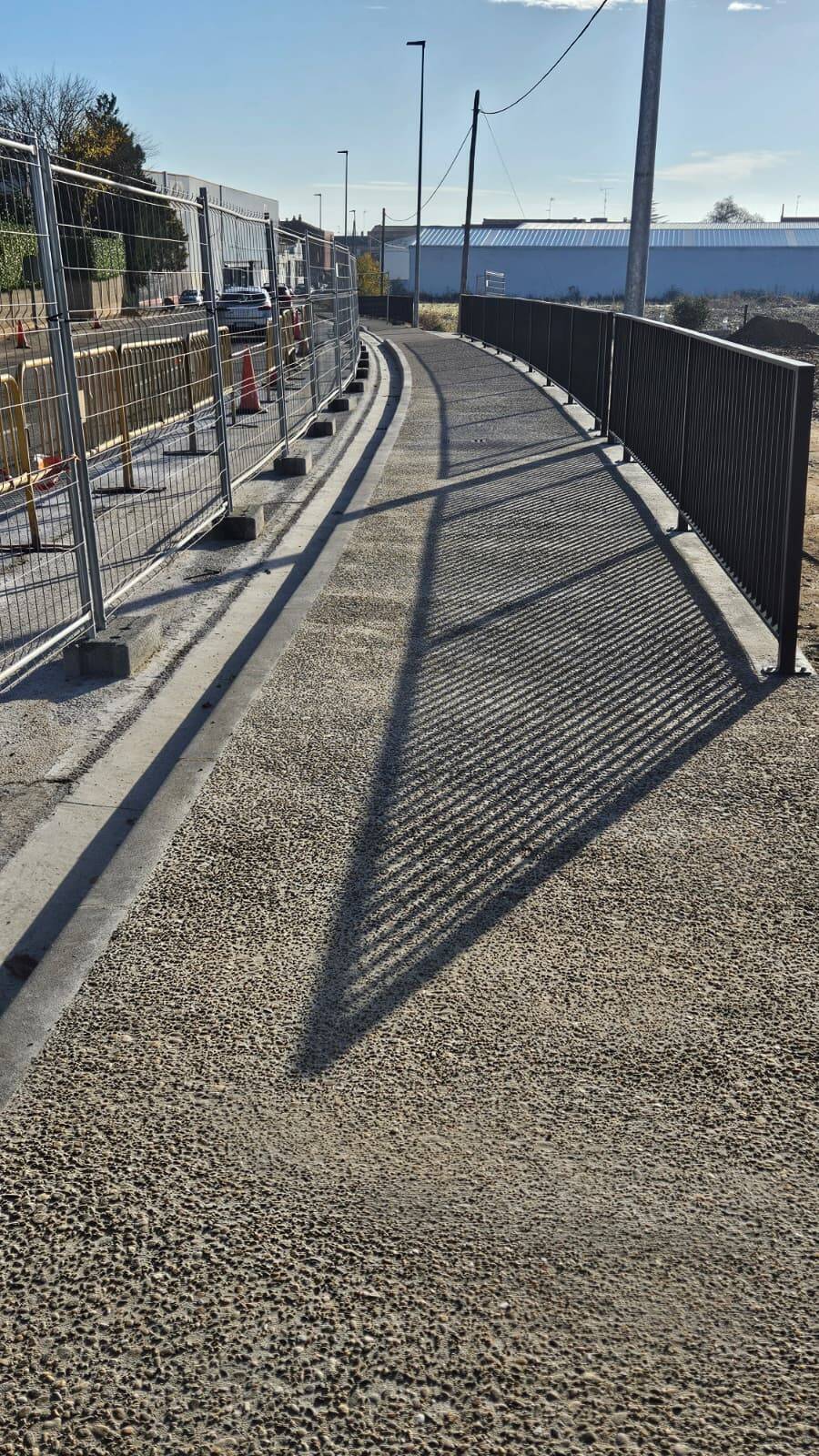 La calle Viacampo ya tiene acera en todo su lado sur, aunque no se podrá caminar por ella hasta mañana después de retirar el vallado.