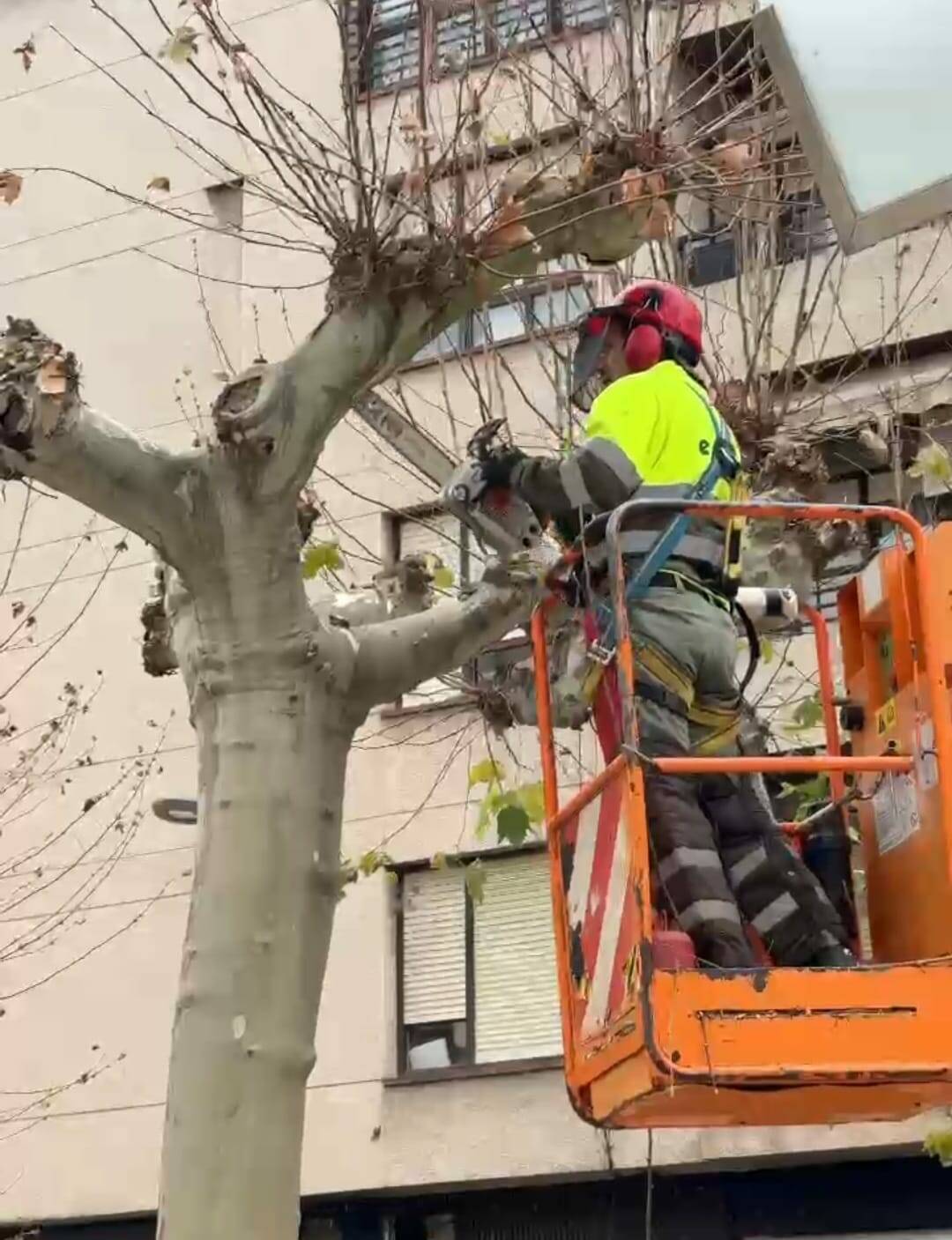 Los primeros trabajos se están realizando en los plataneros del paseo del Mercadal para después continuar en los plataneros de la avenida Valvanera.
